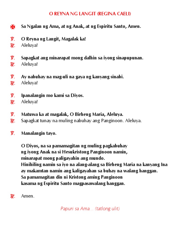 Regina Caeli O Reyna Ng Langit Pdf