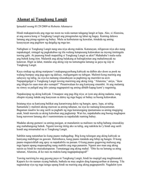 K to 12 curriculum - Filipino - Aralin 6Inihanda ni Bb. Get notified when Alamat ni Tungkung Langit ni Roberto Añonuevo is updated. Sign up with Email.